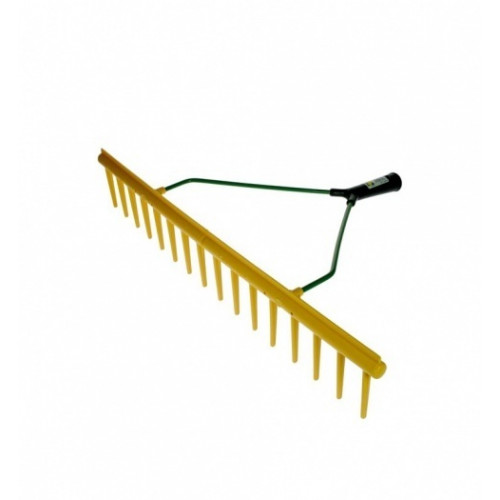 Met 16 rechte tanden, langs één zijde.Veelzijdig bruikbaar voor hooi, gras, bladeren, aarde, etc.Met extra kant voor het effenen van perken en het bewerken van de grond.Werkbreedte: 64 cm.