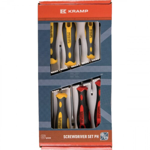 Set van 2 kruiskop (Phillips) en 4 sleufkop schroevendraaiers met een ergonomische handgreep gemaakt van dubbel-composiet kunststof voor optimale krachtoverbrenging.