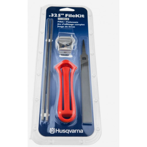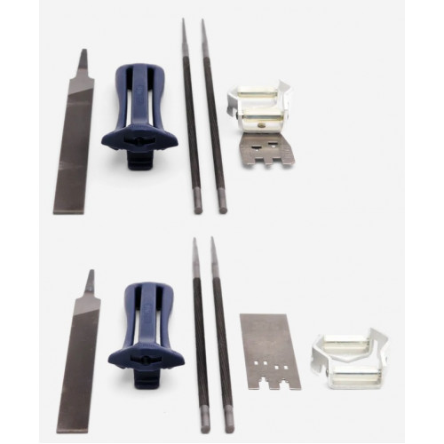 Complete vijlkit om het werk simpeler te houden. Met een correct geslepen ketting, zult u veiliger en comfortabeler werken. De vijlkit bestaat uit een vijlhandvat, combimal of vijlmal met een dieptesteller, twee ronde vijlen en een platte.